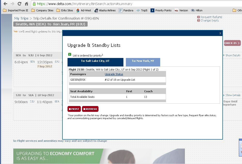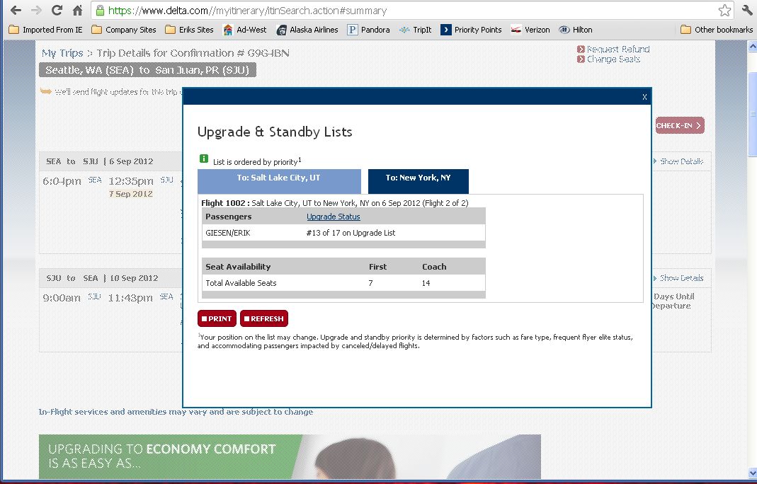 Leg two is where I would really like to get upgraded and there is a very very very slight chance that will happen;