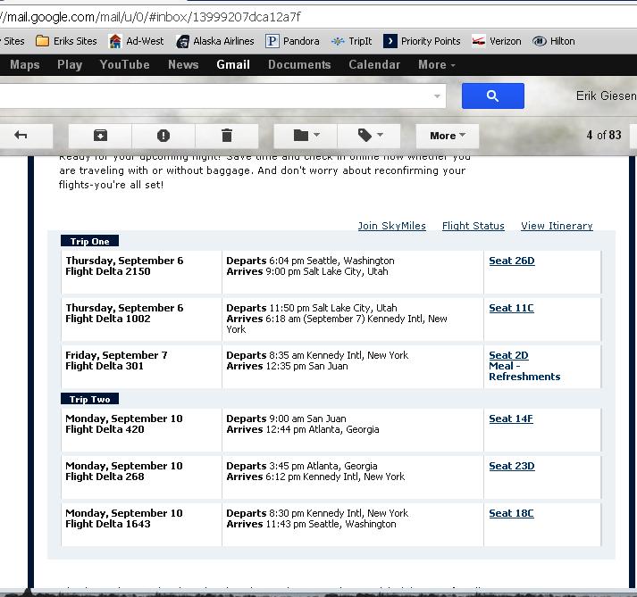 So the emails started coming in stating I was upgraded on one of my leg’s JFK-SJU. I’m excited and hopeful for the other legs but very doubtful.