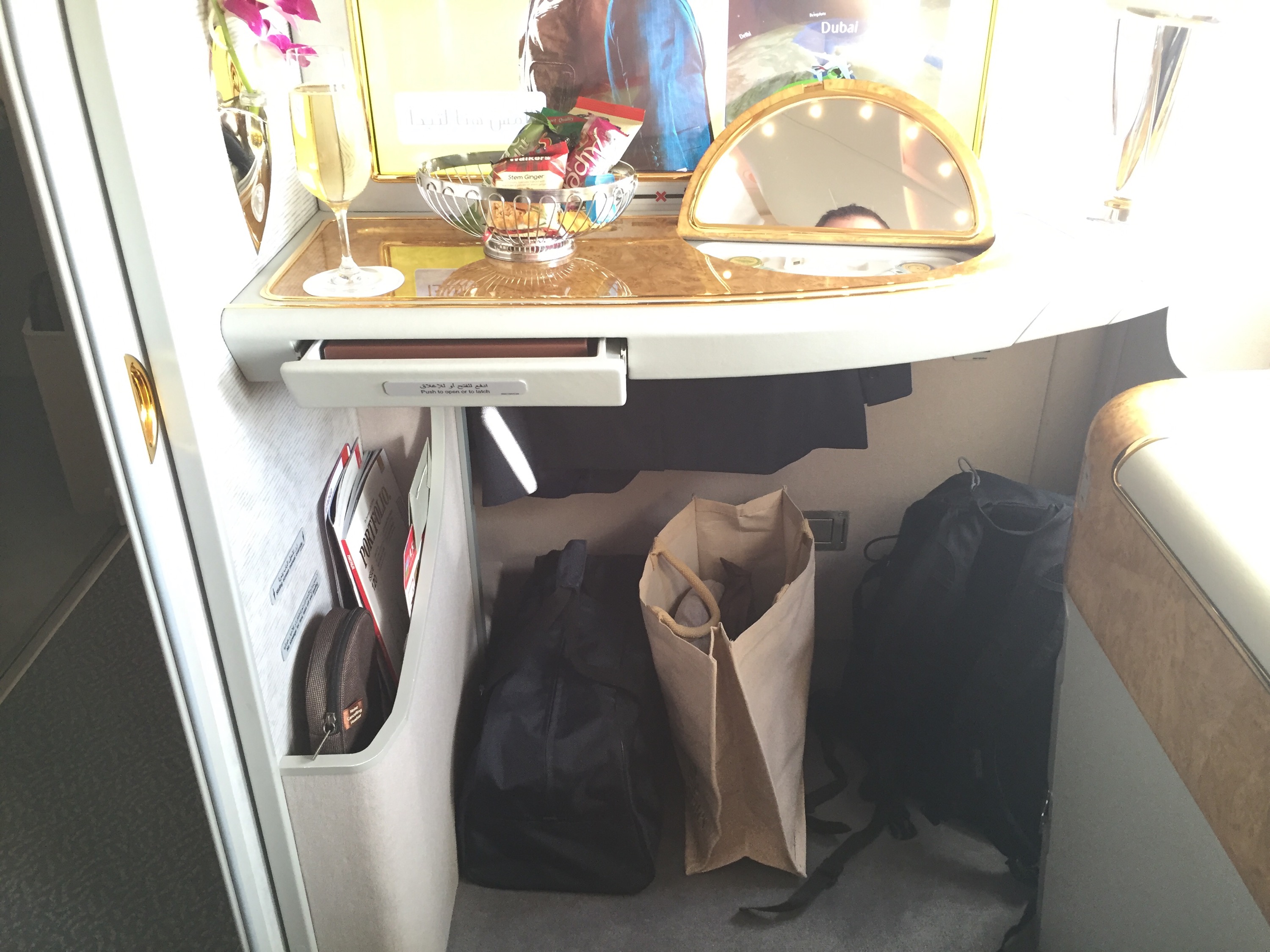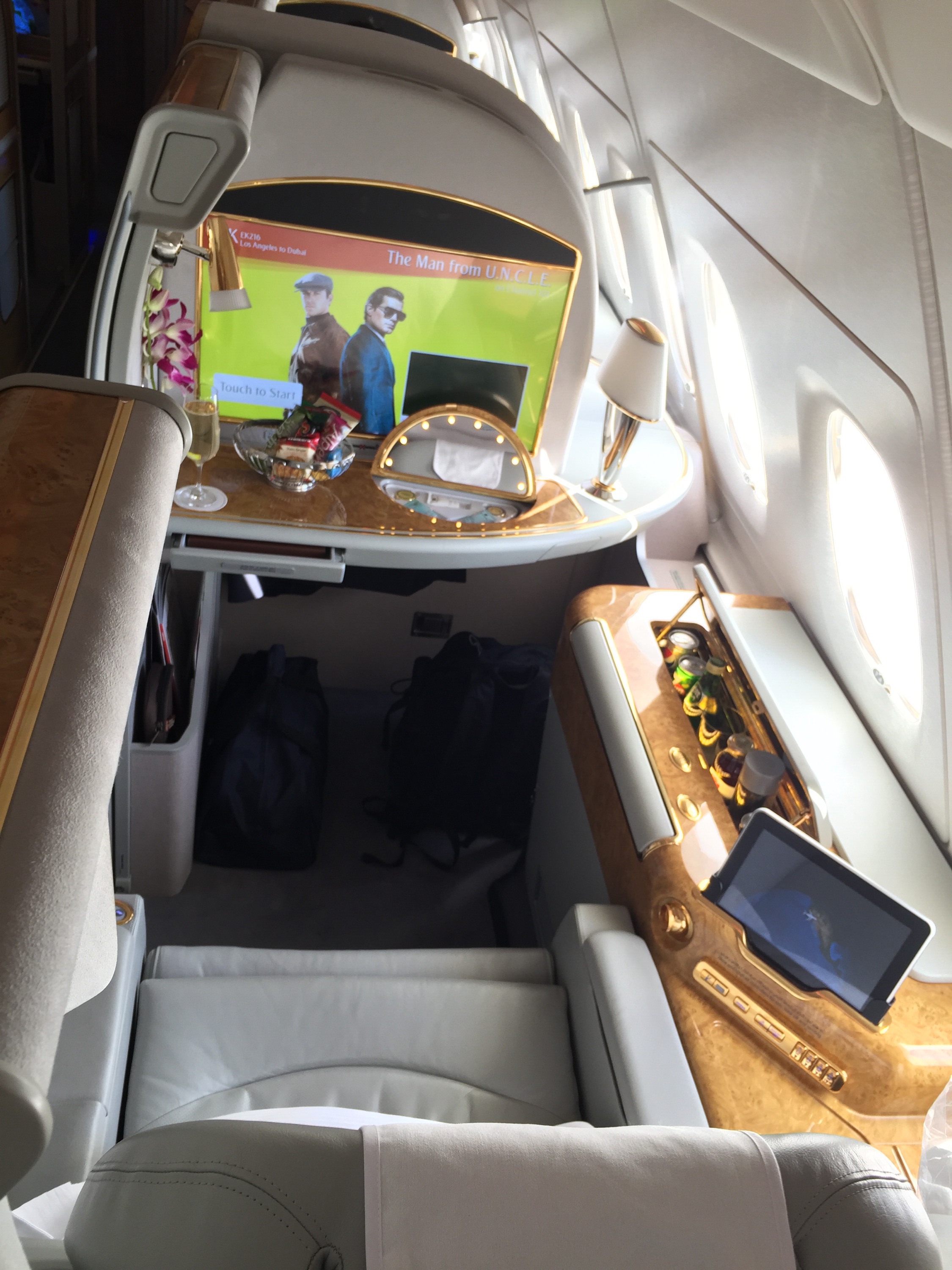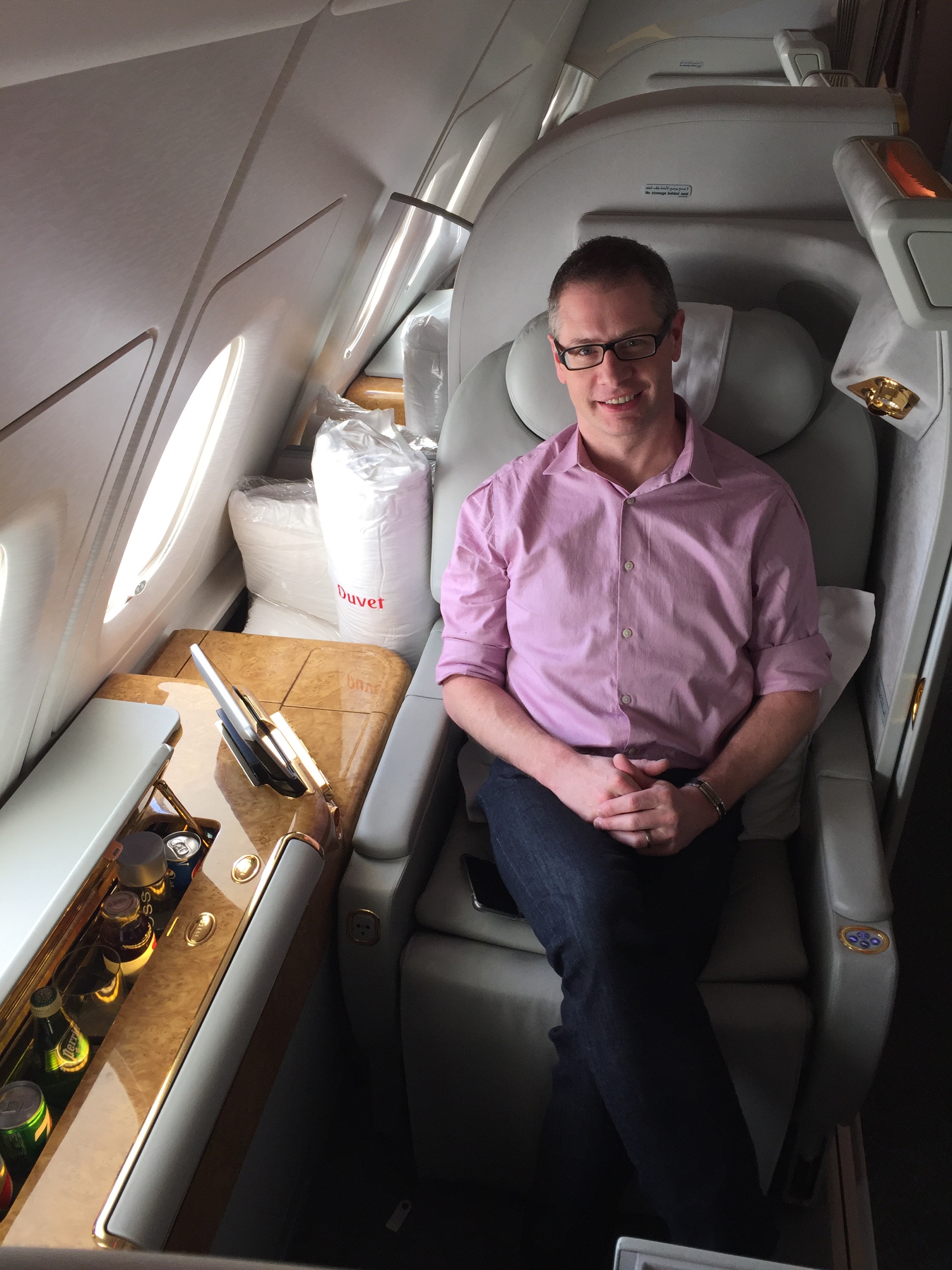 Once we arrived we checked in to our next flight and made our way to the Emirates First Class Lounge. Here I worked for the next 2 hours on some work i had to complete. Ate lunch and relaxed. The next 15 hours was anticipated to be quite stressful and active.