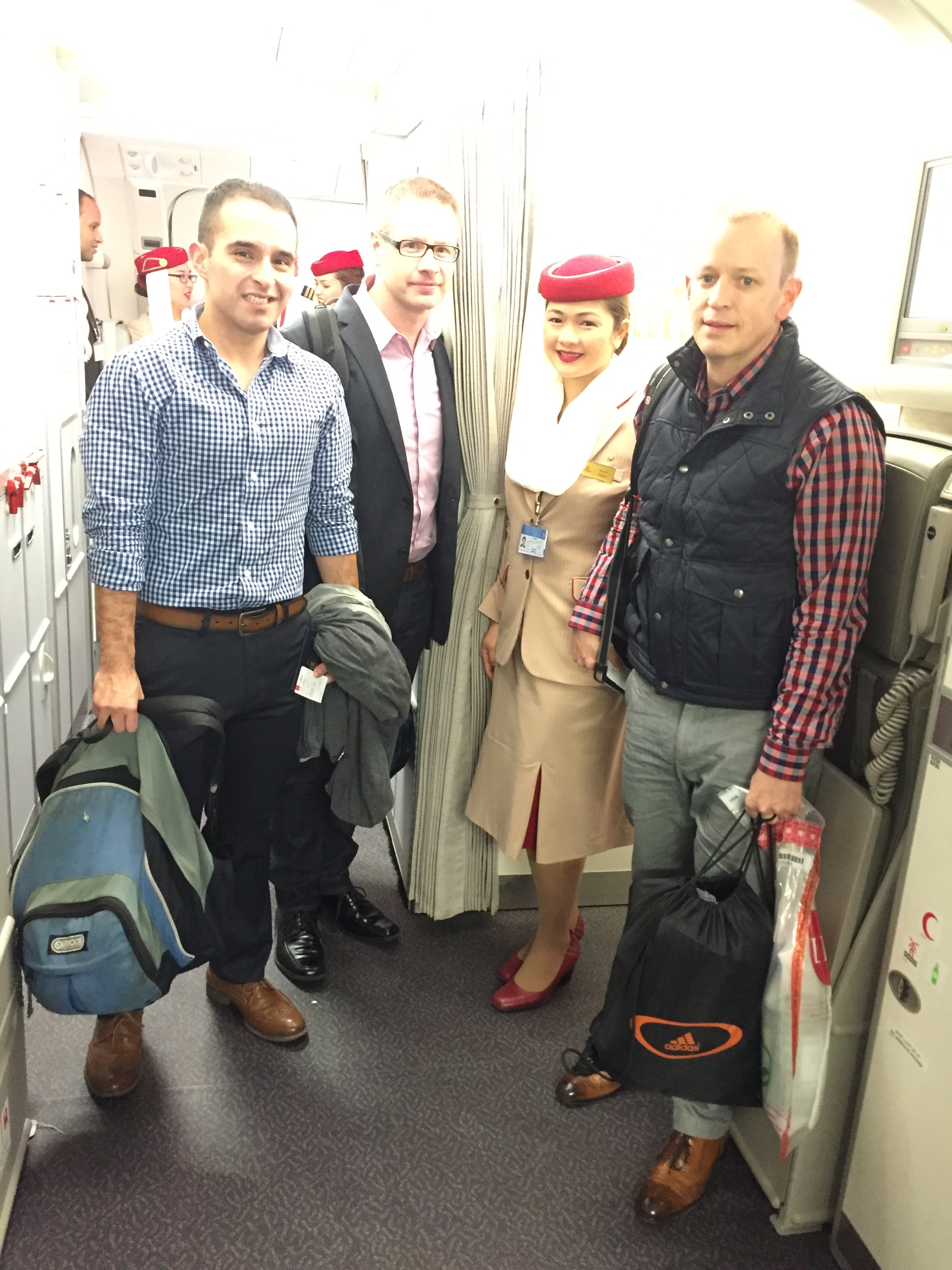 We always start off with a group photo boarding the plane.