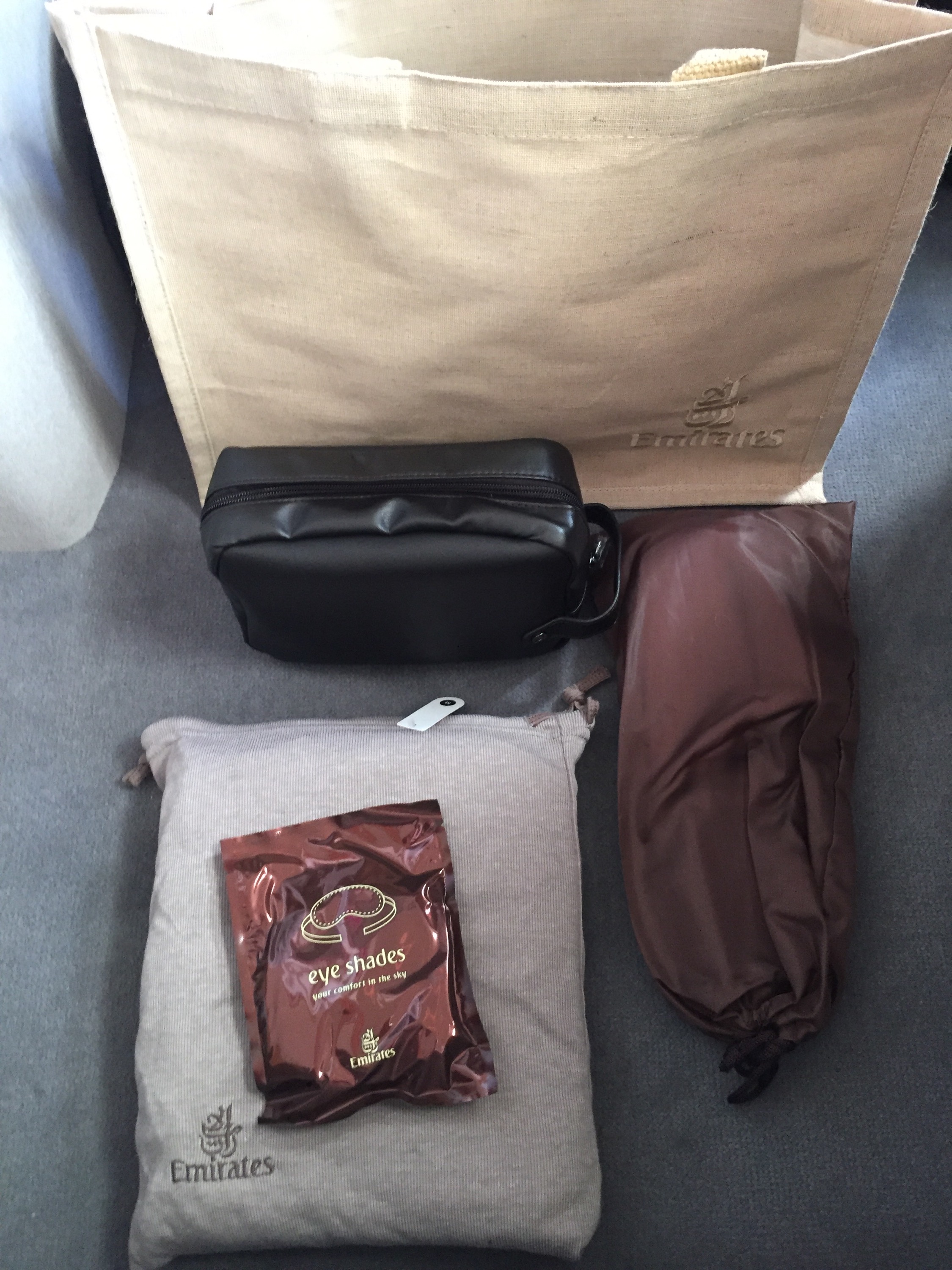 Amenity bag, Pajamas, Slippers, eye shades and a sweet new bag.