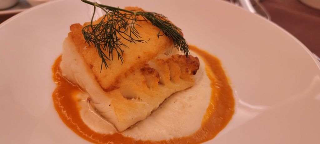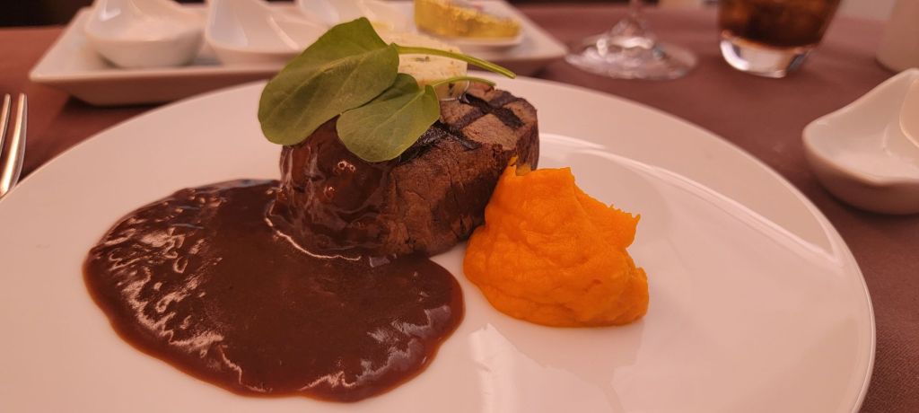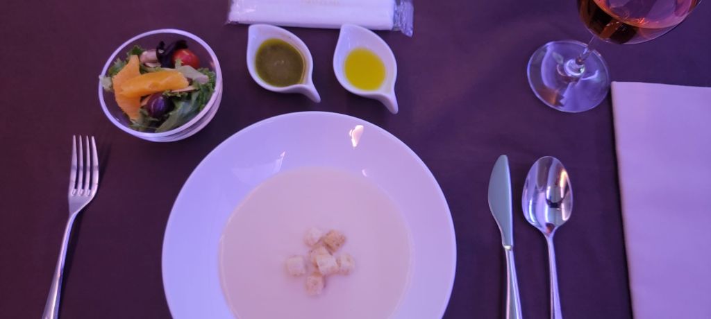 The menu had many options. I am not a fish person and usually Asian based airlines are heavy into fish. Luckily, I had options other than fish. But wouldn’t you know it…. I ordered the fish. Sauted Chilean Sea Bass. I know. I must have been drunk or something. The honest story, is I have health issues and should be eating better. So this was my “start” to eating more healthy. This did not last long, but at least I tried and I have it documented.